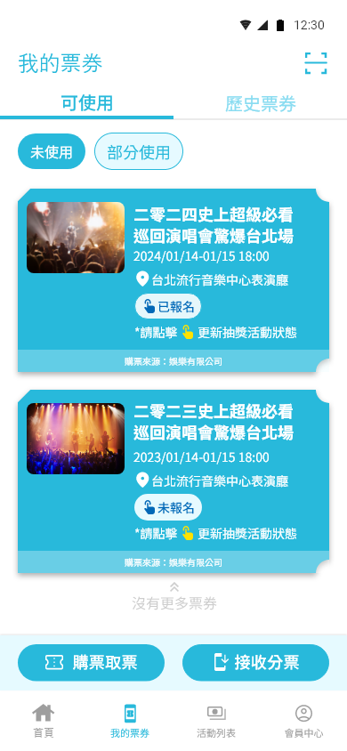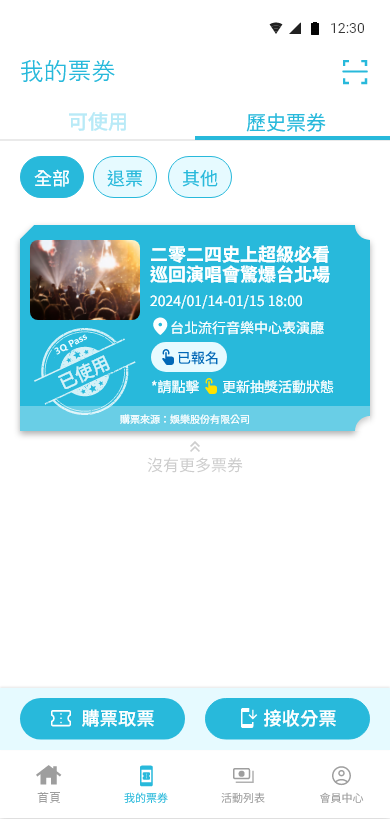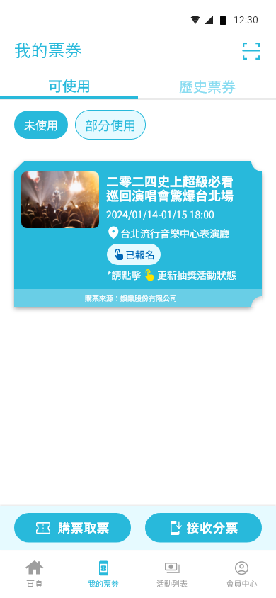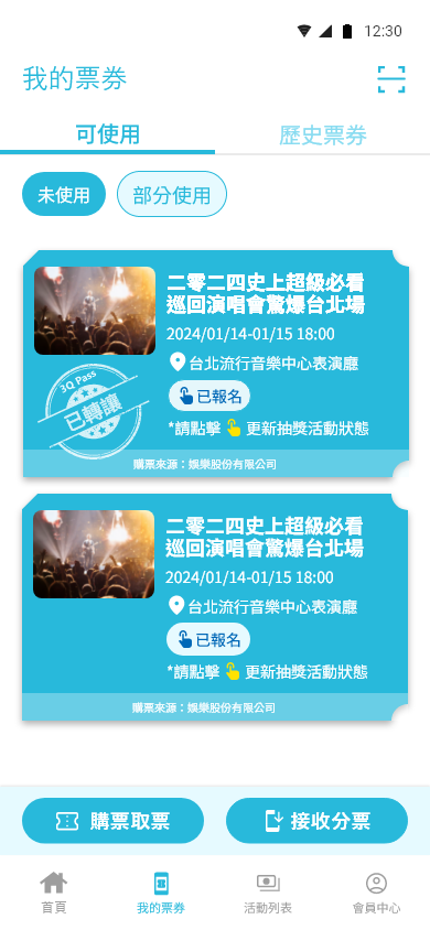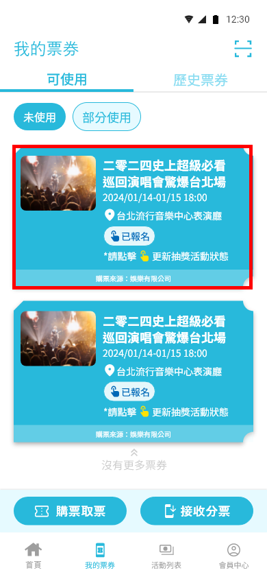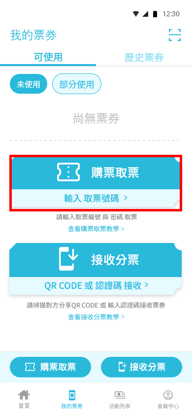 我的票券 – 可使用 即可看到票券