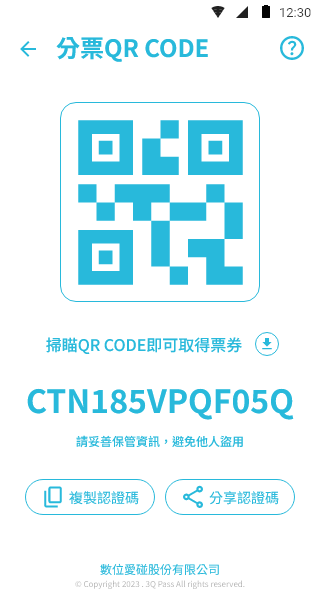 1.顯示分票 QRCODE 、票券認證碼