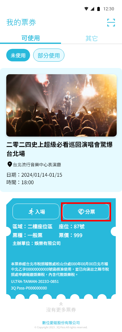 我的票券 > 點選需分票之票券