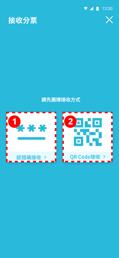 選擇輸入1.認證碼2.QR接收
