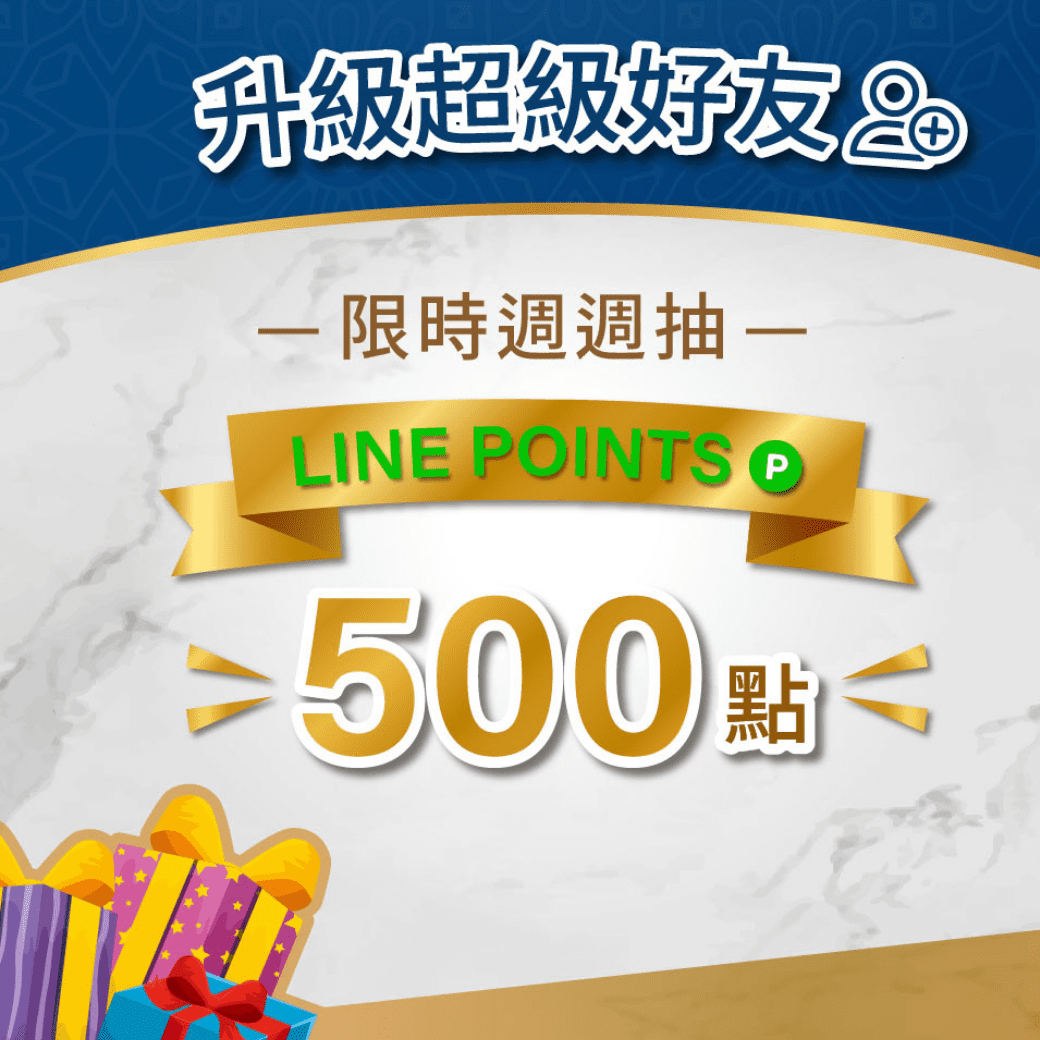 抽獎方式:經系統比對確認為4月份升級超友,將每周三(4/13、4/20、4/27、5/4)抽出1名 LINE POINTS 500點得主
