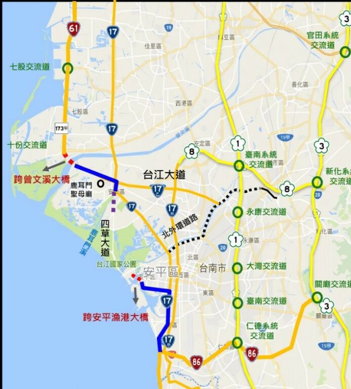 - 台61線(規劃中):將於青草崙設置交流道,並銜接台江大道。(興建/規劃中)