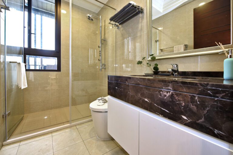 衛浴空間為常溼區域,建議隨時保持乾燥以防止濕滑,並使用中性清潔劑與乾布擦拭保養相關設備,以延長浴室內所有設備之壽命。