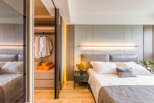 ▲34坪主臥設計開放式更衣間,呈現精品質感,並營造一個讓人放鬆好眠的空間。