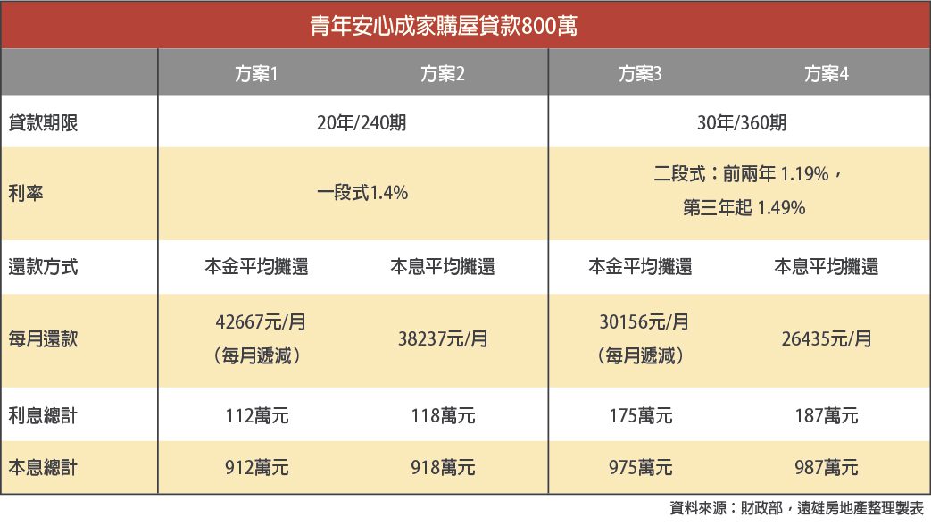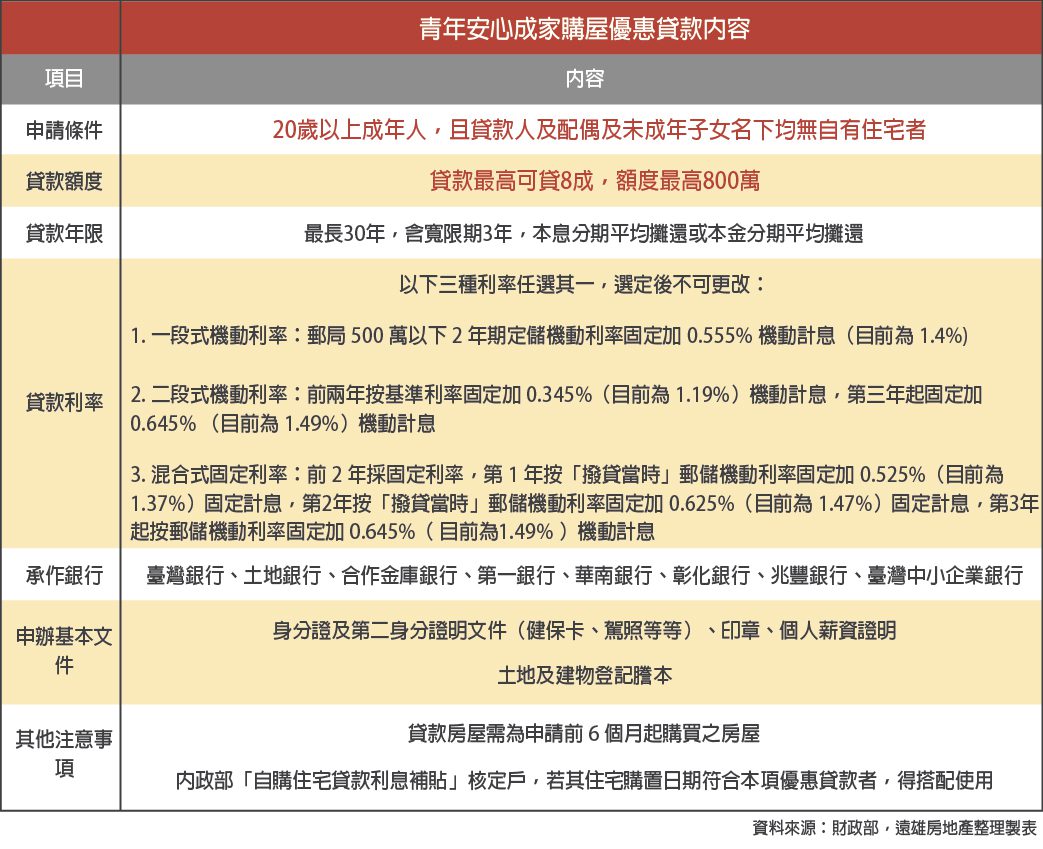 如果你是「首購族」(不是指第一次買房者,而是只要你滿20歲以上,且本人及配偶及未成年子女名下皆無自有住宅,就可以算是首購族),可以申請政府推出的「青年安心成家購屋優惠貸款」,最高可貸 8成,最高額度可到新臺幣 800 萬元。如果800萬額度不夠,還可配合該行庫的其他房貸辦法增加貸款額度。