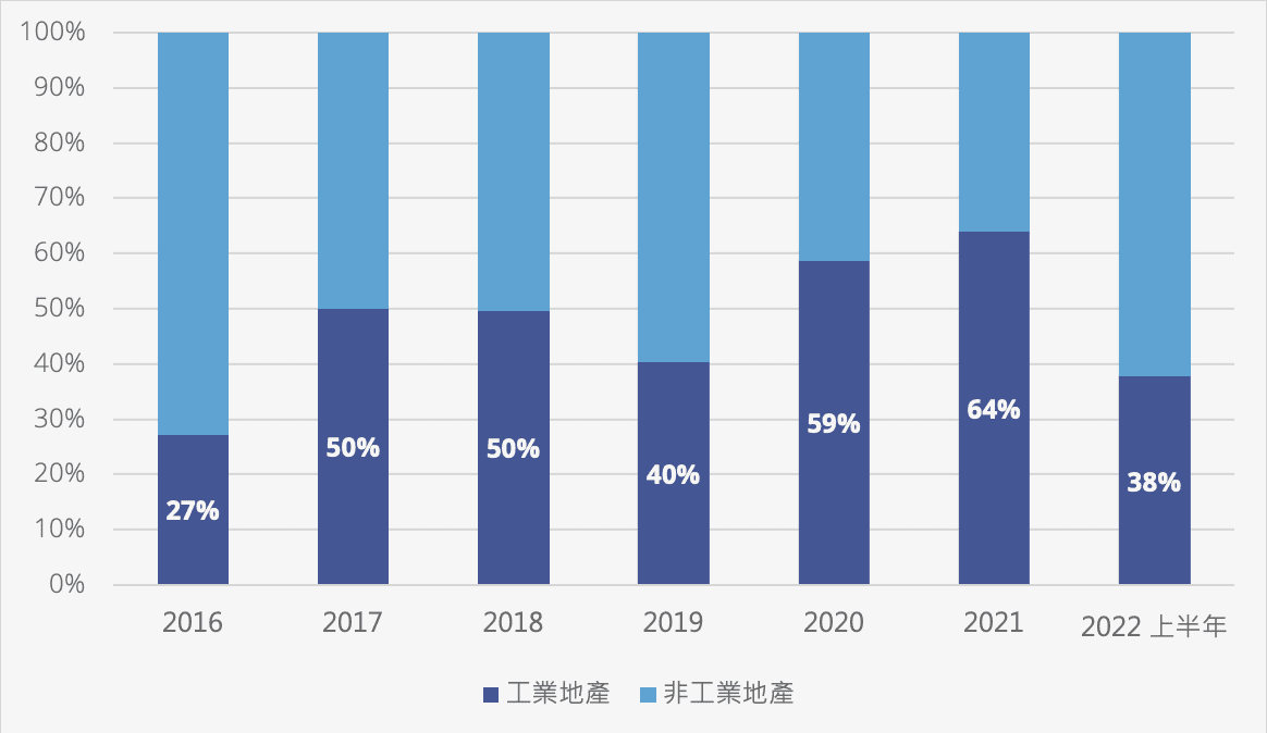 ▲圖二:廠辦/廠房/物流交易佔比。 (圖片可點擊放大) 資料來源:高力國際