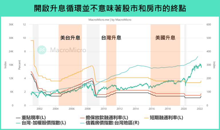 今年開始全球央行為了抑制通膨紛紛走向升息循環,而通常普遍認為升息將提高購屋人的房貸成本,進而減少市場的購房需求,房價也將出現反轉,但透過歷史來看或許並非這麼簡單,從有紀錄以來,台灣房市大約經歷了 8 次房地產上行循環,統整各循環的時間點以及當時台灣央行的貨幣政策,可看出升降息並非影響房地產漲跌的主因,而是取決於當時的經濟環境。
