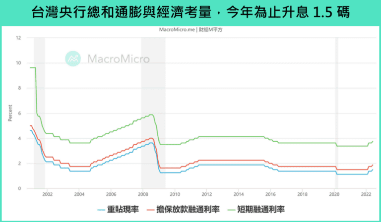 最後,從國內經濟金融情勢納入考量來看,今年以來,各國為了壓抑高漲的通膨紛紛進入升息循環,包括美國、英國、英國、紐西蘭、澳洲等國,拉大與台灣公債利差,進而影響台幣走勢,因此升息決定也是同時考量到能夠在各國持續升息環境下穩定台灣國內的金融情勢。