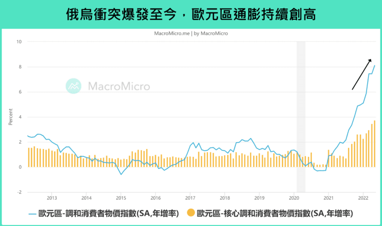 從去年至今,各大央行政策逐漸退場,由新興市場率先進入升息循環,而成熟市場也從去年下半年起實施貨幣緊縮政策來解決高通膨的問題,與此同時,俄烏衝突的爆發造成能源及糧食價格的飆漲,使歐洲、美國的消費者物價不斷創新高,隨高通膨持續升溫,各大央行紛紛加速貨幣緊縮時程。