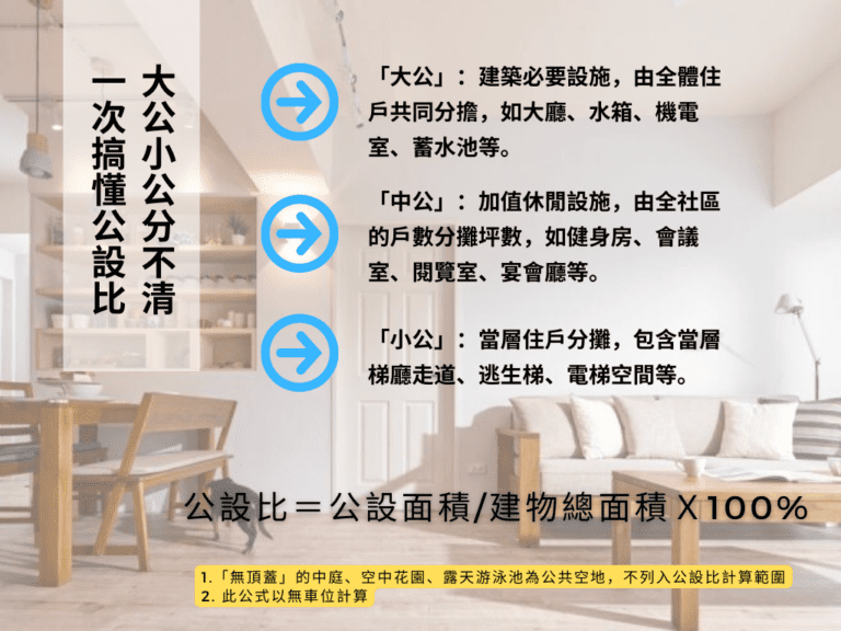 那麼,「公設比」究竟是怎麼算出來的呢?首先得先了解公設定義的範疇。