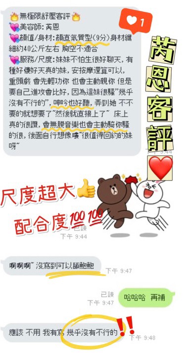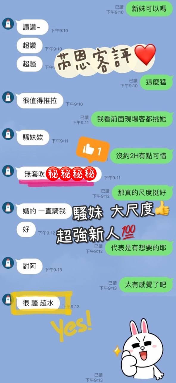 心得:大眼瘦臉愛笑長髮美女,進門就三光,胸部大B小C小豆豆小暈,按摩還好,翻正後直接餵奶,無膜音樂,蛋蛋也照顧到了,會一直色色話及要做愛,手口並用側躺在我旁邊順利出水。