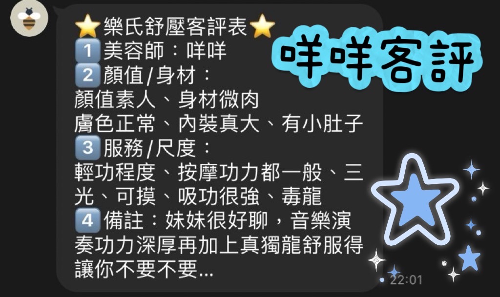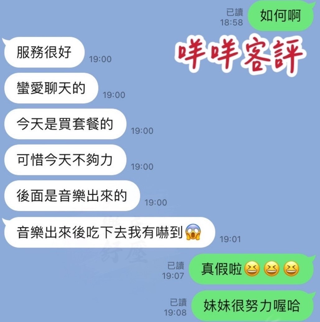 心得:妹妹很熱情,不用怕不熟,套餐4200該有的都有,滿建議再加一節的,身心靈比較容易滿足