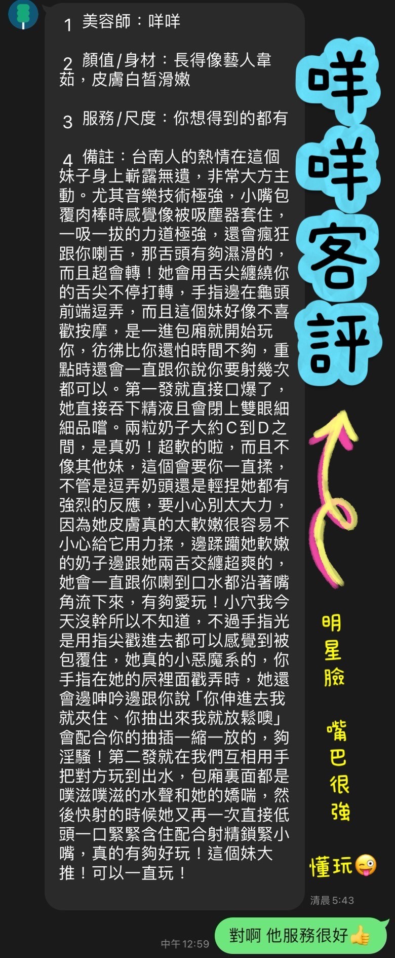 心得:大推服務一流…小按正面三光口技-一流小穴緊加值體育耐超30分時戰也不會說累直到出水也剛好時間到咩咩也不會叫你趕快而說慢慢來不急直到第二通知才跟櫃台說好了:出了門還鎖吻抱抱是有女友感覺: