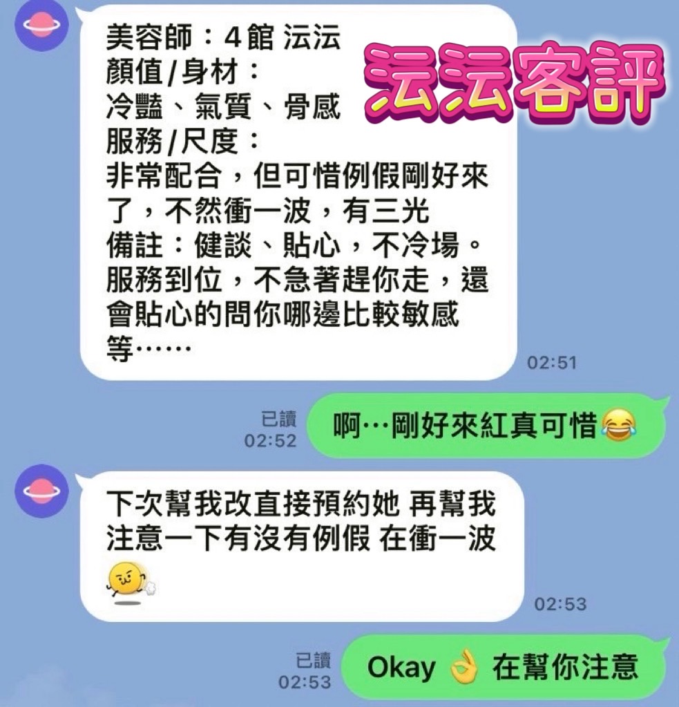 心得:高顏值,可愛性感兼具,小隻馬天花板,雖然KG但線條是真的頂級,聲音給人很溫柔的感覺酥麻酥麻的,好聊I人來也不用怕,會主動開題,互動自然不尷尬,服務跟態度很棒,禮貌對待的話應該體驗感都很好!比較喜歡溫柔乾淨的客人。
