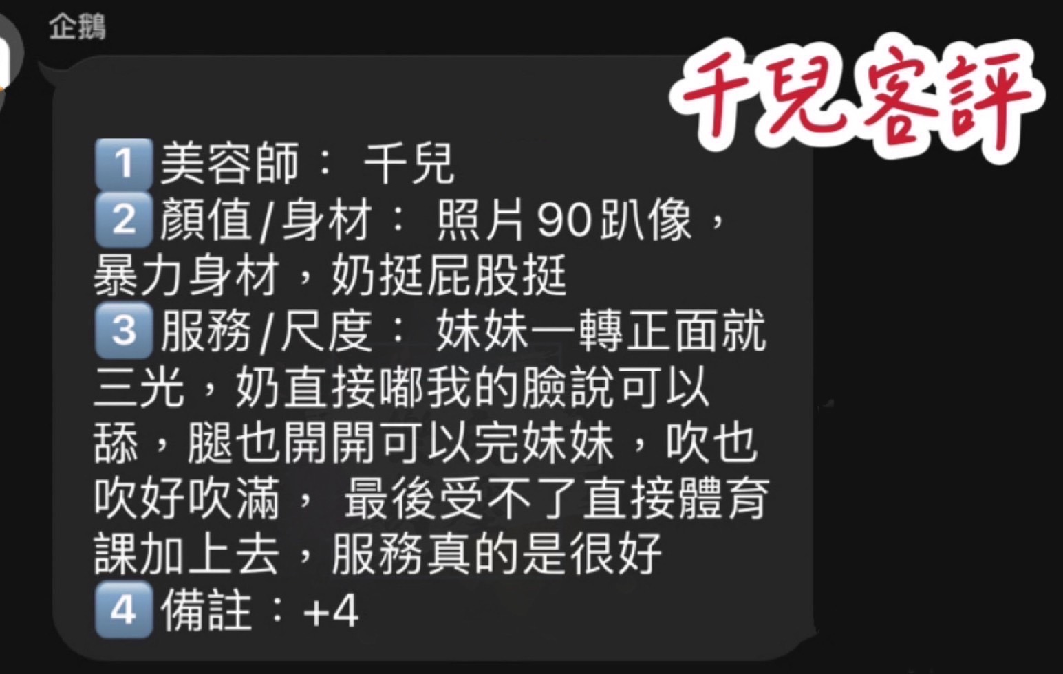 心得:躺在床上就開始三光吸屌,會主動把奶湊過來給妳吃,可摳可摸可親,後來受不了直接加值,叫聲好聽,穴也狠緊,喜歡大力撞擊,後來出不來直接加無套,撐不到5分鐘就順利出水,後來有在給小費,體驗不錯,推