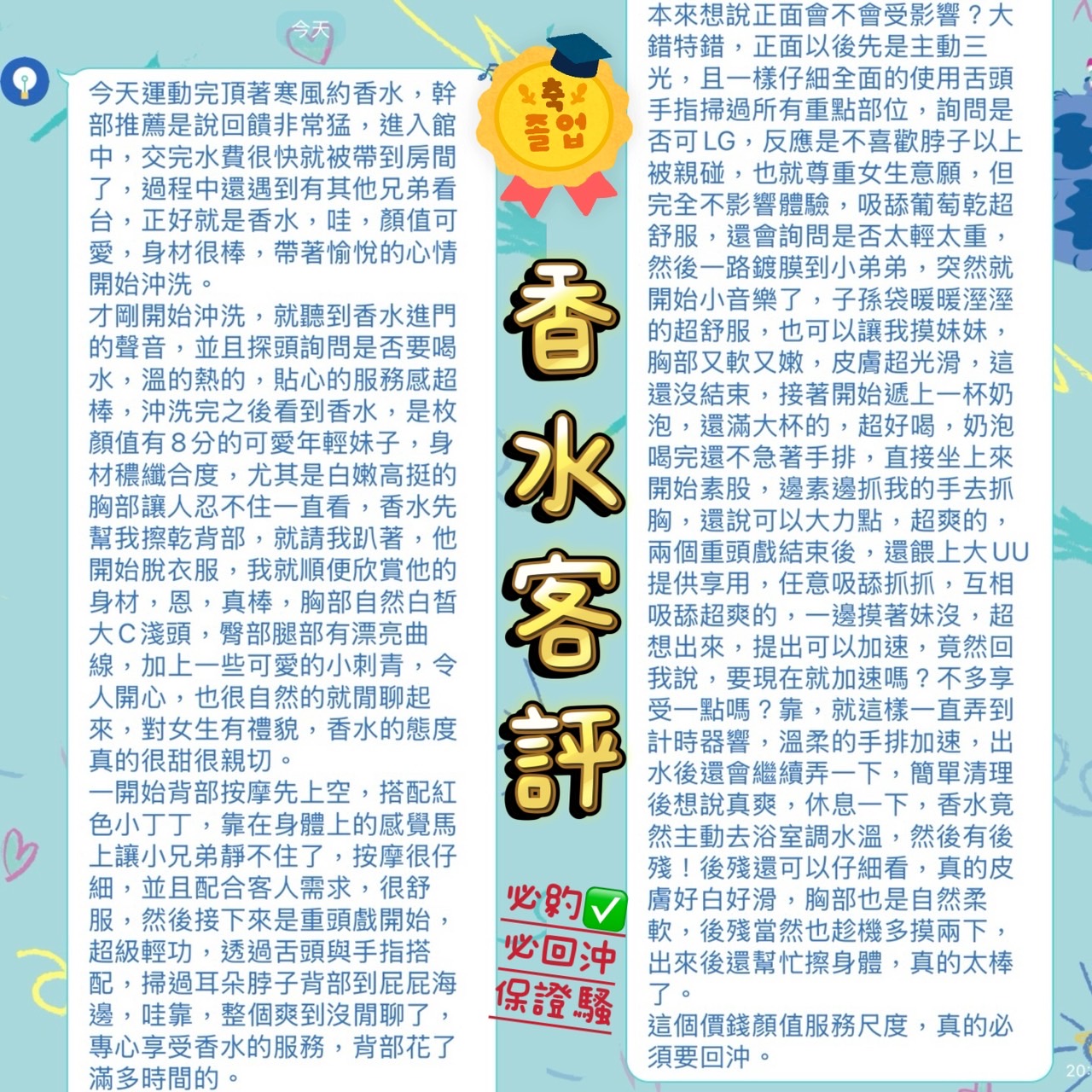 心得:妹妹服務周到,態度也很令人敬佩,整個體驗下來身心都非常滿足,可以放進口袋名單,或是推薦給新手和性格內向的朋友