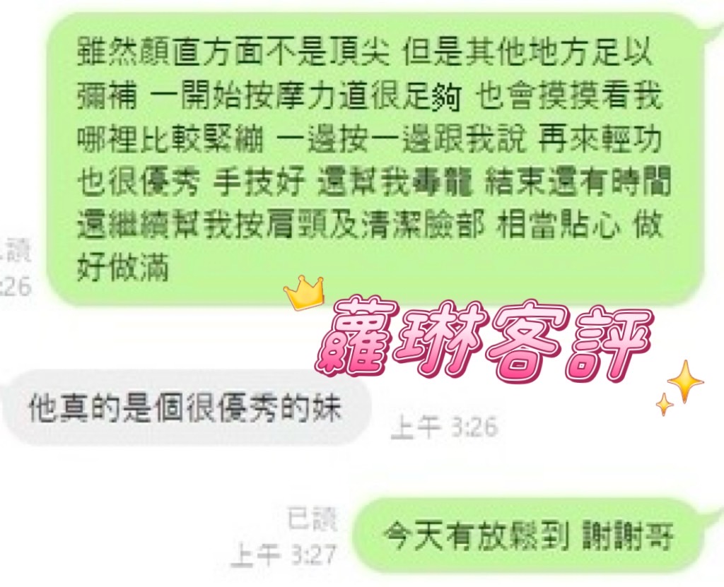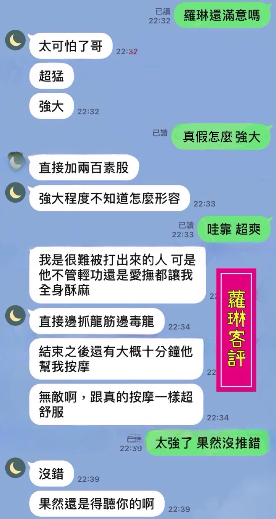 服務蠻好的 真的會按摩 輕功很強 弄得我不要我不要 轉過身來直接三光 手技很強