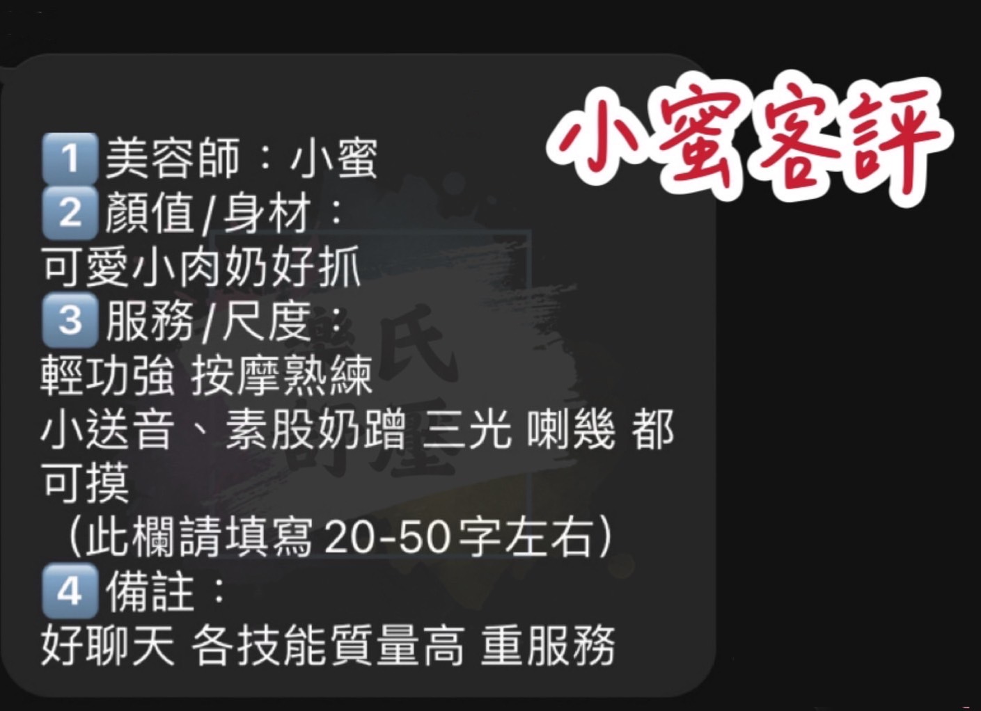 年紀:30上下 外型:輕熟女 偏肉感 胸部:真F 膚質膚色:普通 音樂:1.5 體育:4.5 尺度:大 心得:第N次回沖,服務品質還是一樣穩定,按摩跟輕功都很舒服,會小小送一點🎵