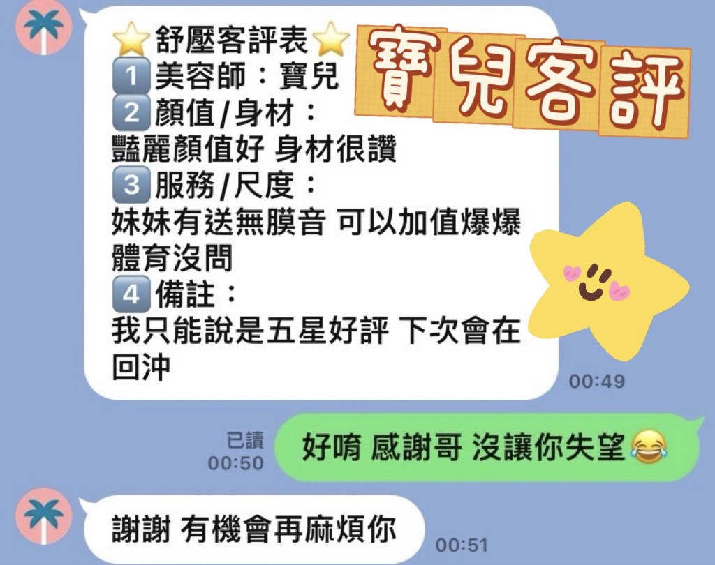 寶兒按摩很有力也很溫柔,個性很健談不怕生,