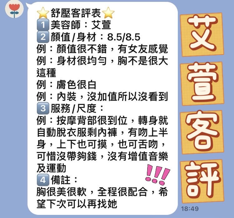 心得:幹部臨時幫我換的,之前那位剛好請假,害我搭TAXI趕過去,不過真的值得,聽幹部說是之前別家店的王牌,真的很正的妹妹,剛聽聲音就值回票價了 5星