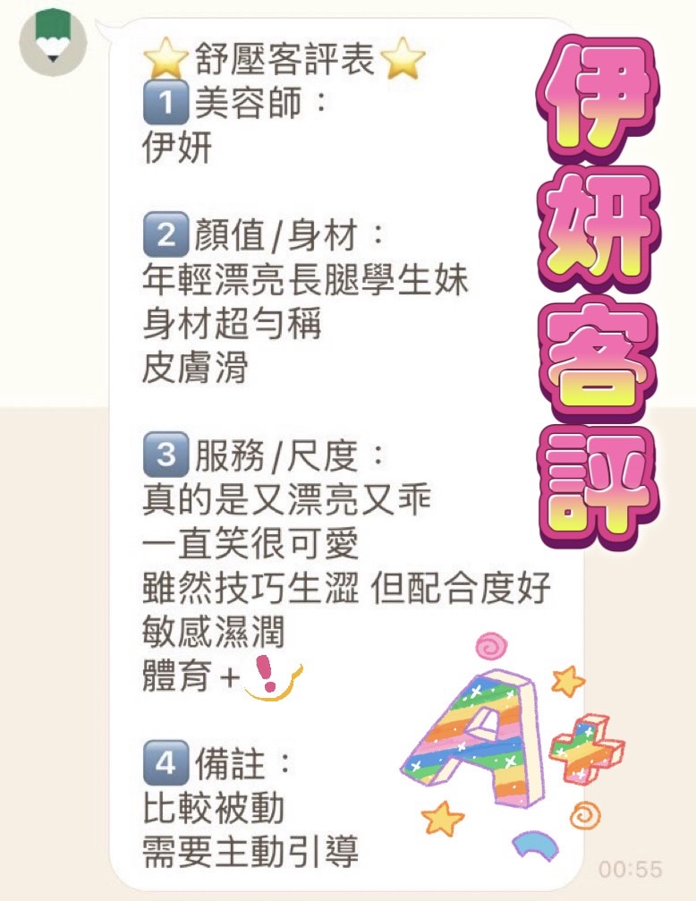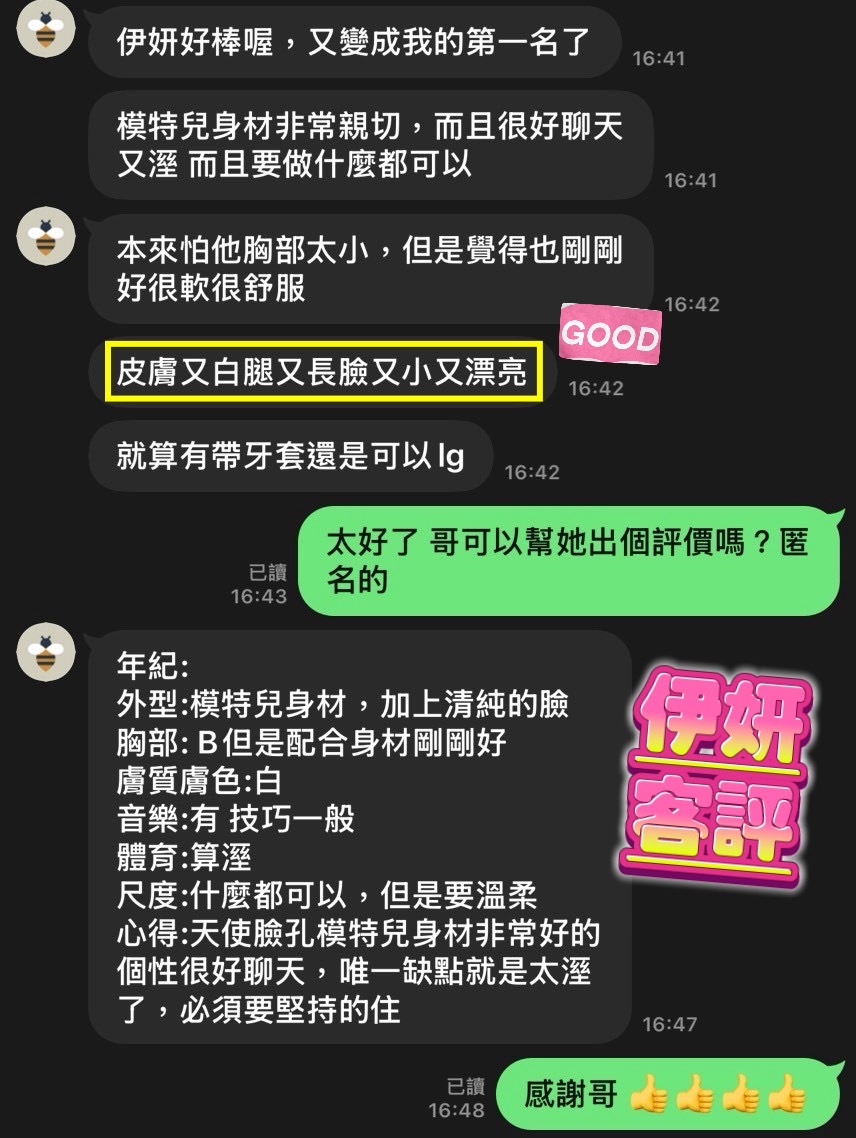 心得:妹子年輕愛聊天,笑起來很可愛,比較乖,要主動引導,適合腿控