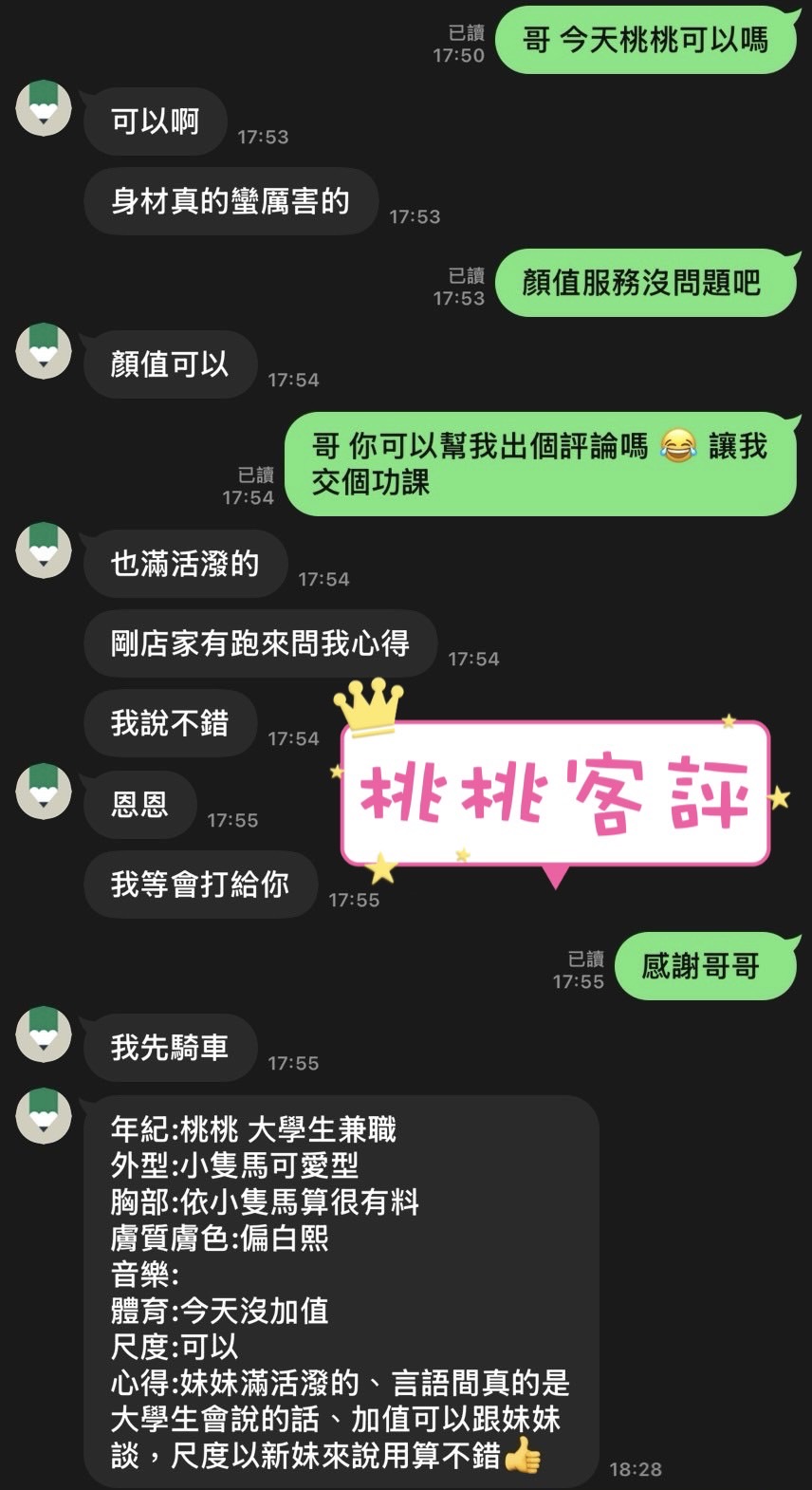 年紀:23 外型:小隻馬 胸部:c 膚質膚色:偏白 音樂:沒問 體育:可加 尺度:可三光 心得: 年輕大學生,健談,顏直可身材小隻馬,胸型算美,整體來說就是年輕妹子