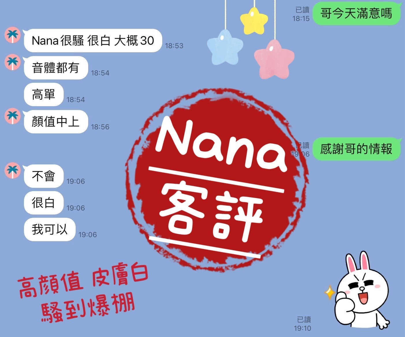心得:很久沒遇到服務頂天的妹了,各式素股就先弄爆你,超級騷,加值後不得了,也很耐督,不是很青的那種妹,但顏值還是有的。還有後殘,不是小洗,不說太多自行體會