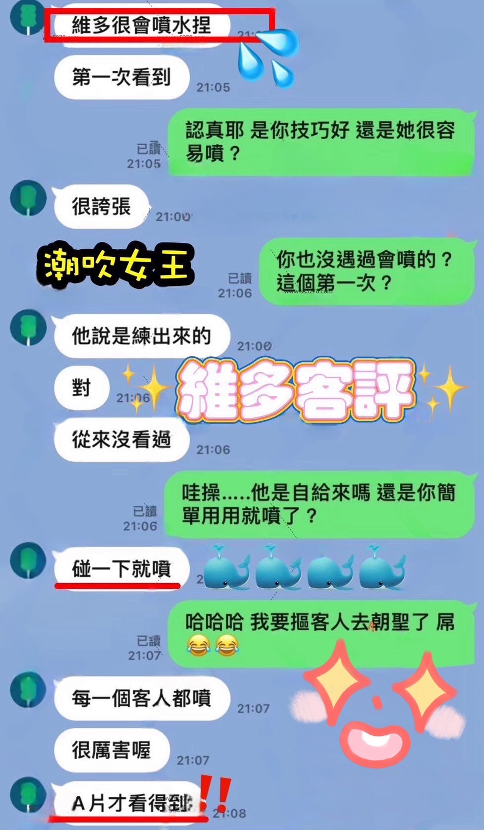 心得:有練過凱格爾運動,水可以噴到整身,極品中的極品,最好看到客評都別約誒!都覺得是假客評,給我們這些老點約就好!