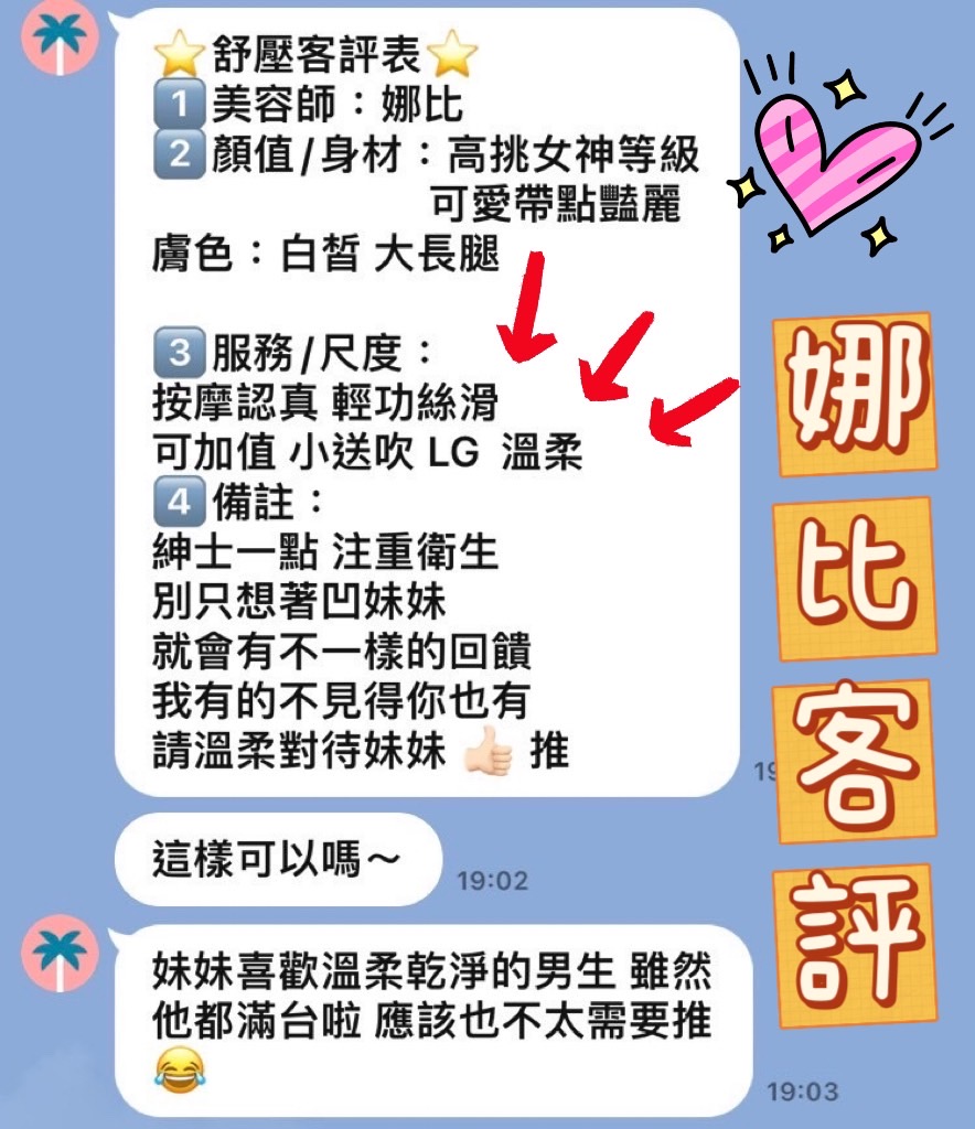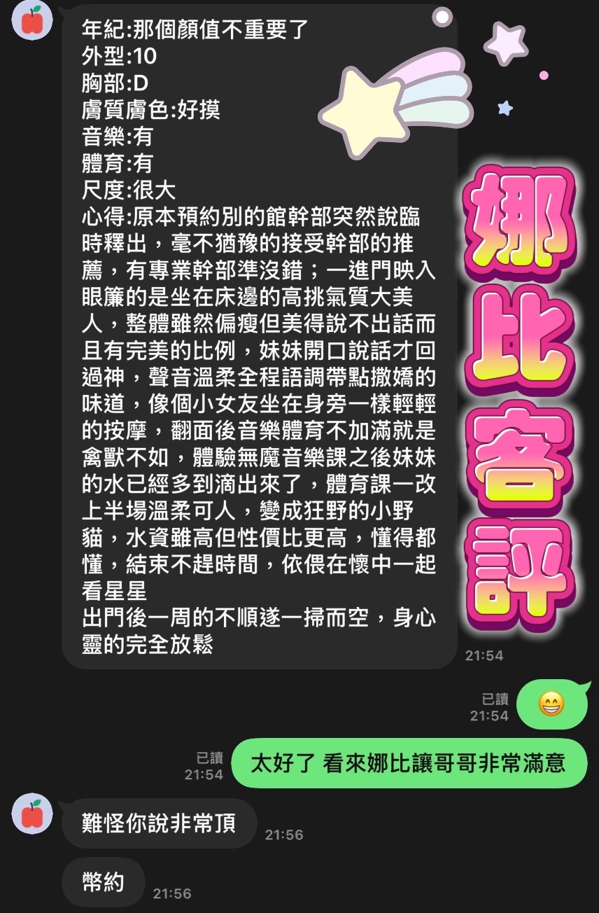 心得:我覺得這個妹的重點在互動,真的是一進門就給你最親切的互動,聊天也非常主動,我覺得這是最大賣點。